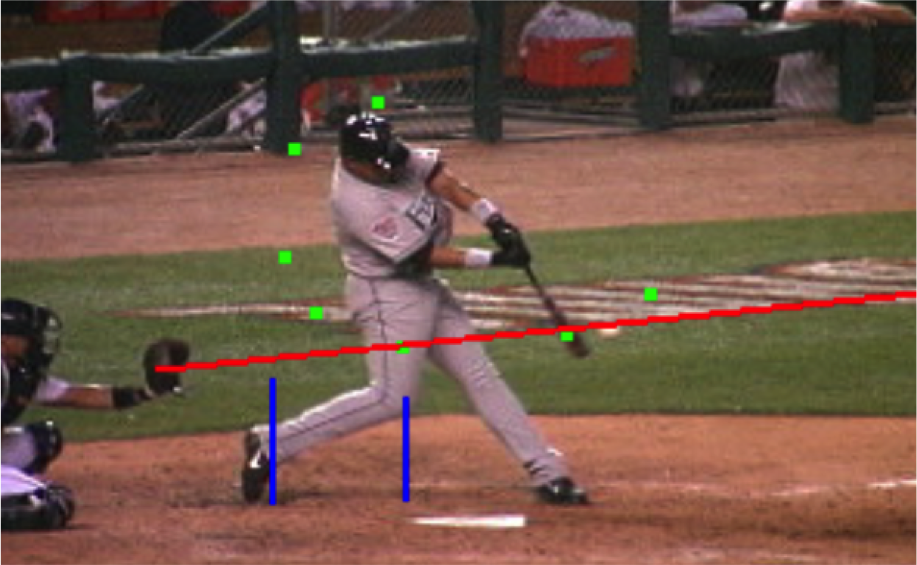 *Note: Red = pitch line/bat plane, Blue = distance knee traveled from start to contact, Green = Barrel from start to contact.